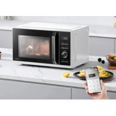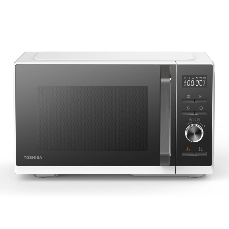 Toshiba MW3-SAC23SF is a 23L smart microwave oven that combines microwave, Grill (1000W) and Air Fry functions, offering cooking flexibility. It features 900W of power with 5-level fully digital control and an LCD display and 10 preset cooking programs including defrost programs by time or weight, for ease of use. In addition, the Air Fry function allows for healthy frying with little or no oil, while the connection to the TSmartLife app provides remote control, access to online recipes and monitoring of the cooking process.